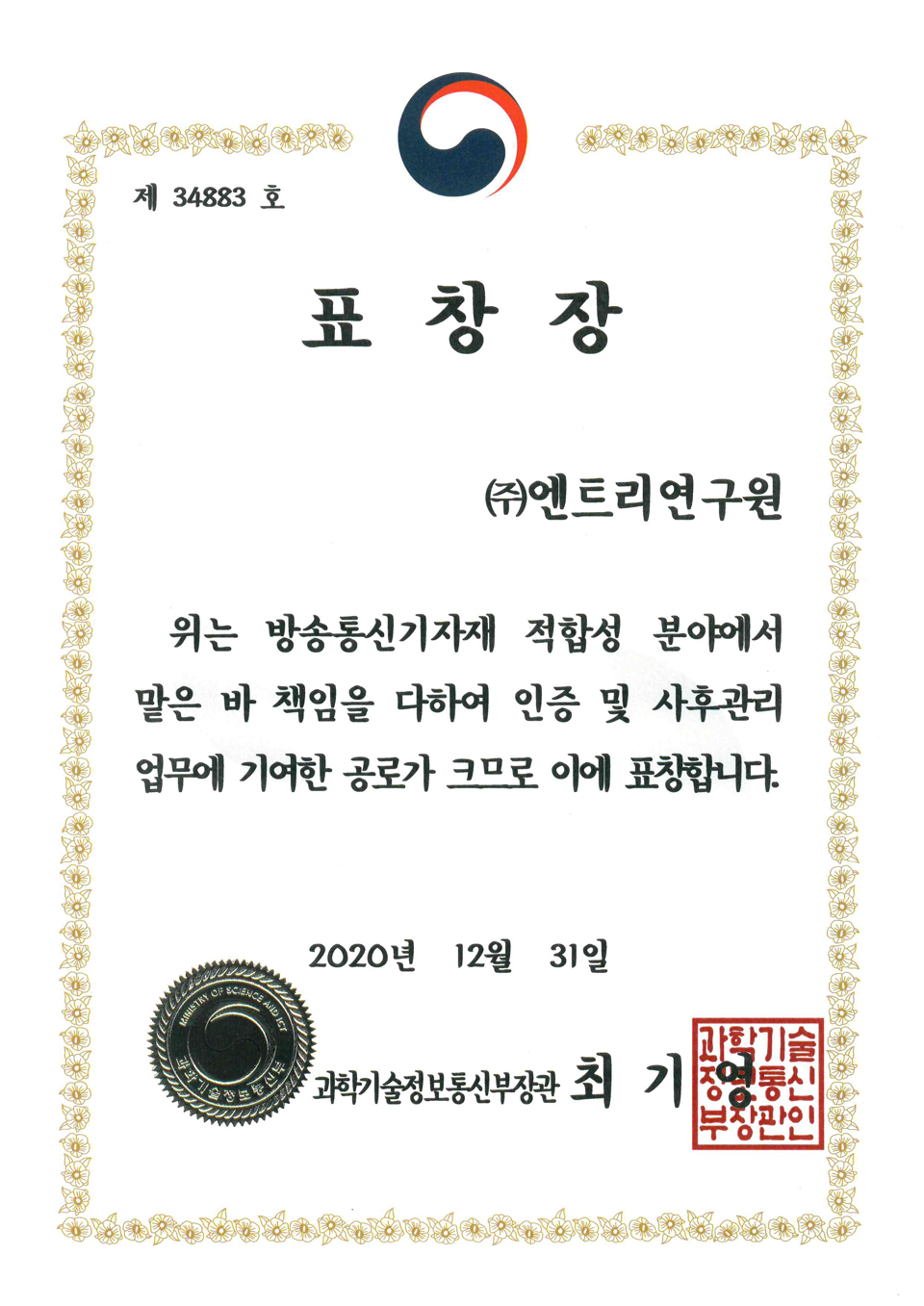 [20201231_과학기술정보통신부장관 표창(제34883호)_(주)엔트리연구원.pdf]