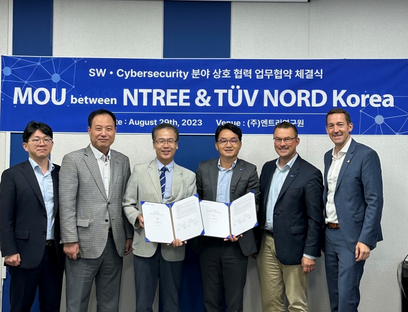 TÜV NORD Korea(대표이사 김광대) 와 ㈜엔트리인구원(대표이사 김홍수•박정서, 이하 엔트리연구원)은 8 월 29 일'SW•Cybersecurity 분야 상호협력"을 위한 업무협약(MOU)을 체결했다.