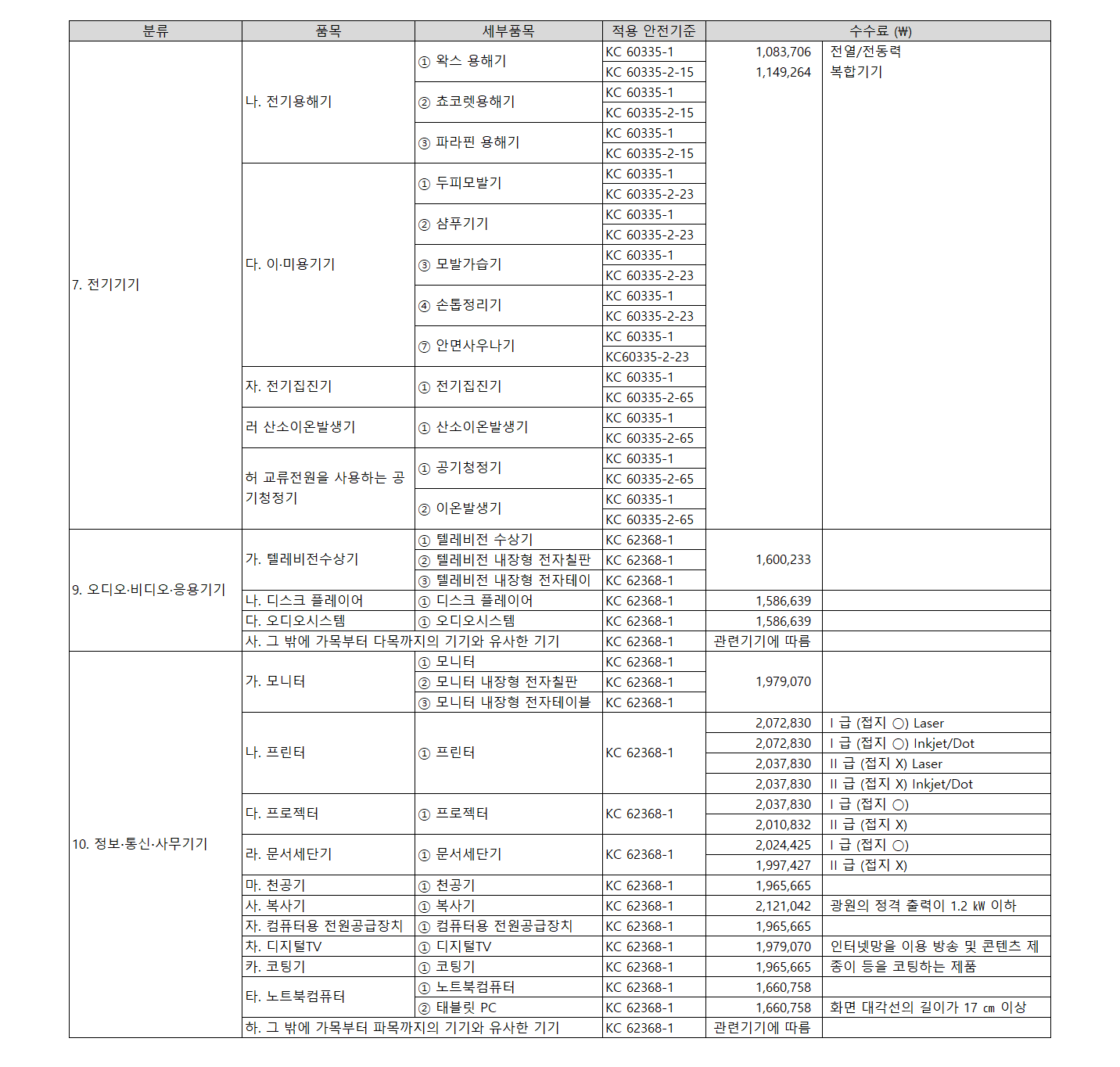 전기용품 안전 확인시험 기본시험 수수료