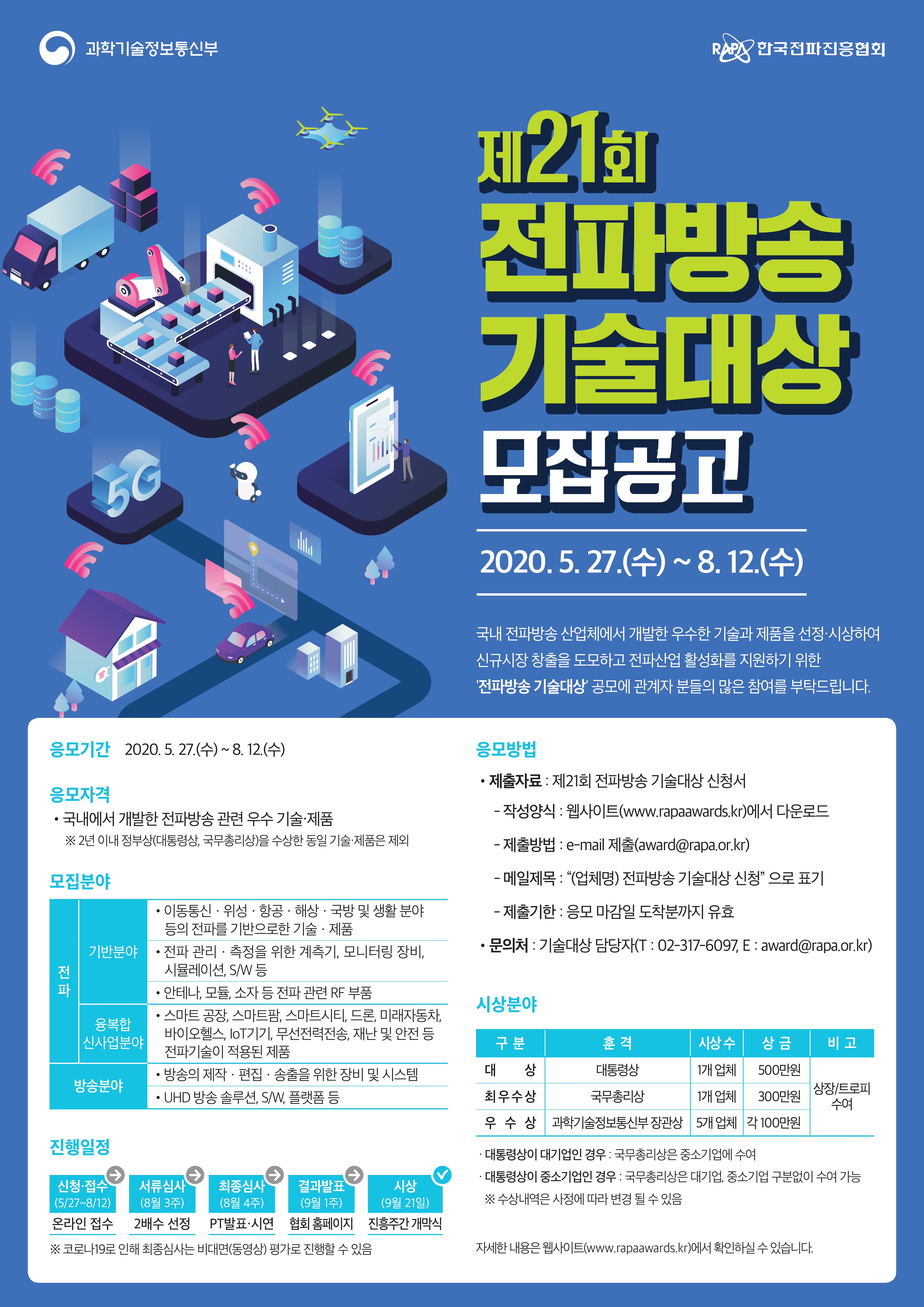 제21회 전파방송 기술대상 모집 일정을 공유드립니다.